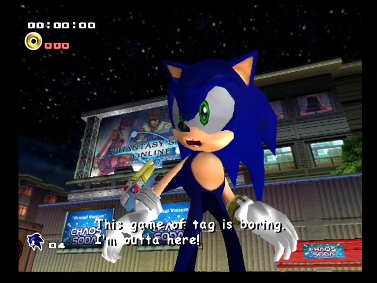 - In Sonic Adventure 2, there are several billboards around City Escape that advertise Phantasy Star Online. The Dreamcast versions of the game depict the original release, while the GameCube and PC versions showed off .